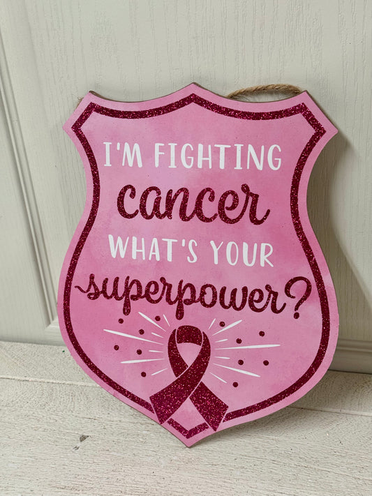 12 Inch Fighting Cancer Badge Shape Wooden Sign
