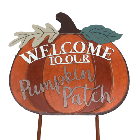 26 Inch Wood Welcome Orange Pumpkin Stake