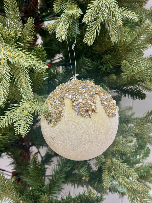 4.75 Inch Cream Silver And Gold Sequin Velvet Dripped Ornament