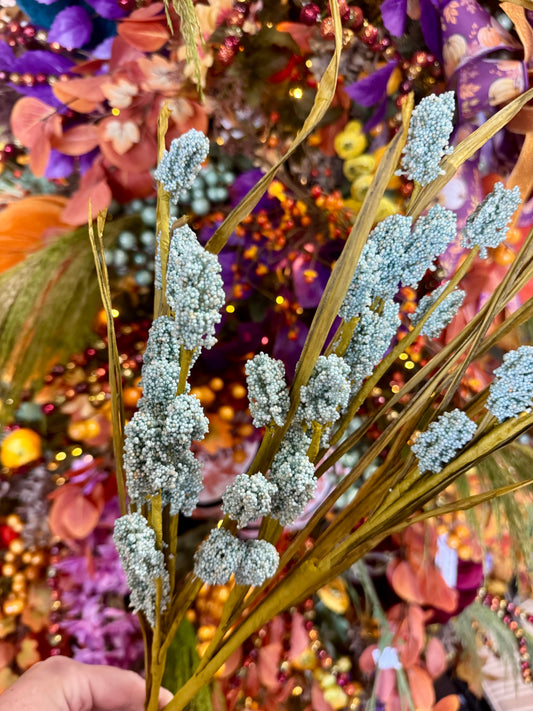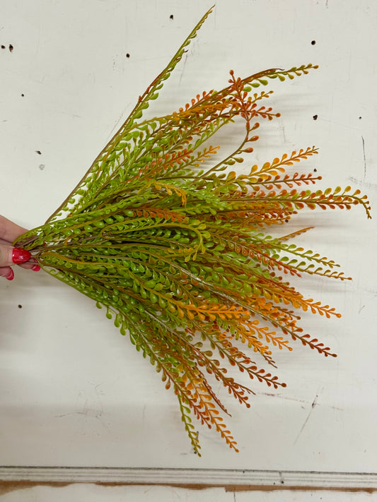 17.5 Inch Moss Green And White Wash Bead Grass Bush