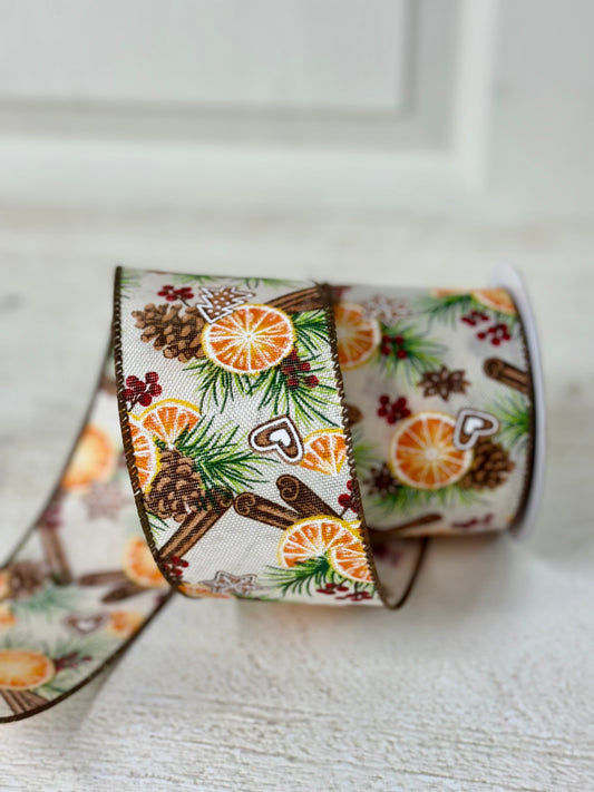 2.5 Inch By 10 Yard Holly, Fruit, And Cinnamon Ribbon
