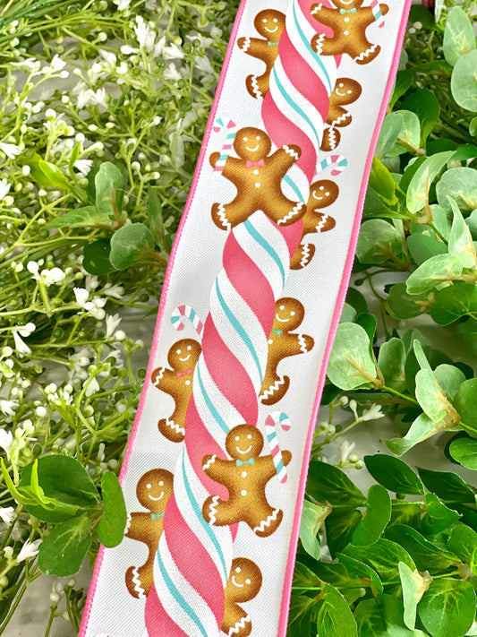 2.5 Inch By 10 Yard Pink And Ice Blue Candy Kids Gingerbread Ribbon