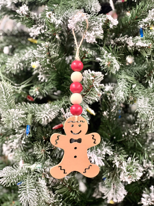 Wood Bead Gingerbread Man Ornament 2 Styles
