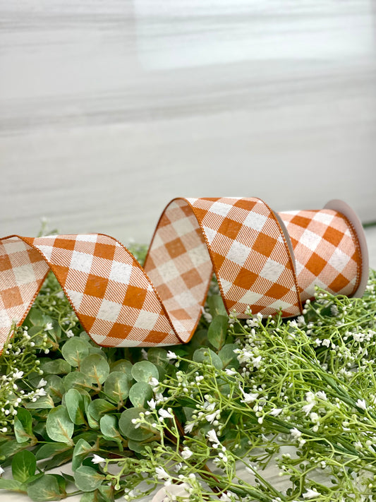 2.5 Inch By 10 Yard Rust Orange And Ivory Gingham Ribbon