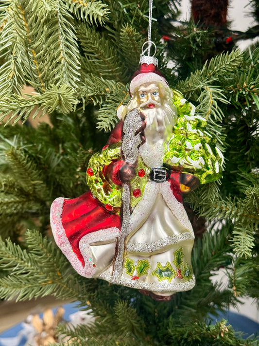 7.25 Inch Red White And Green Santa Claus Glass Ornament