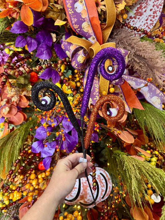 17.5 Inch Purple Orange Black Eyeball Curly Spray