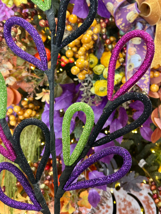 27 Inch Black Purple Lime And Hot Pink Glitter Oval Loops Spray