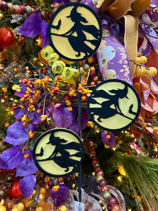 30 Inch Black And Yellow Glitter Felt Flying Witch Spray