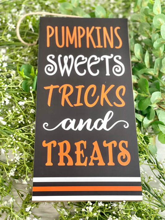 Pumkin Sweets Tricks And Treats Wooden Sign