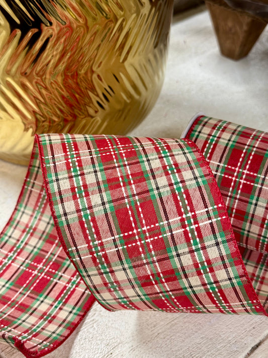 4 Inch By 10 Yard Red Green Natural Tradition Saddle Stitch Ribbon