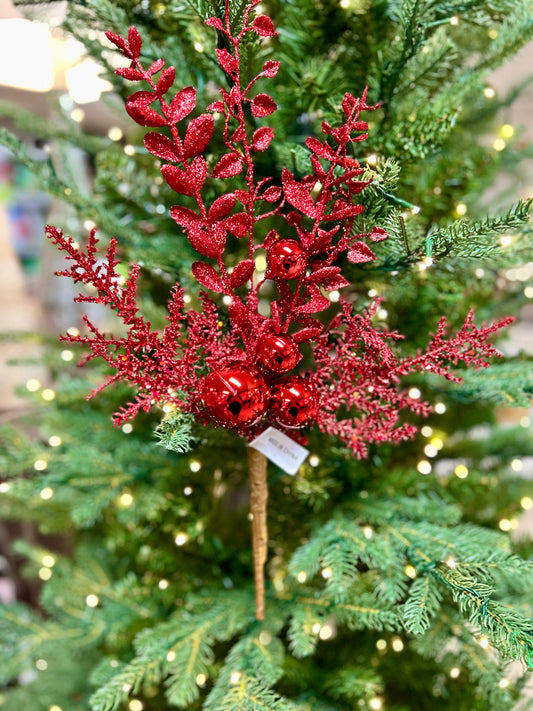 16 Inch Red And Green Berry Pinecone With Leaves Pick