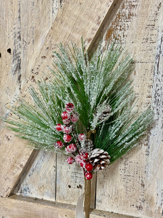 16 Inch Snow Covered Berry Pinecone Needle Bush