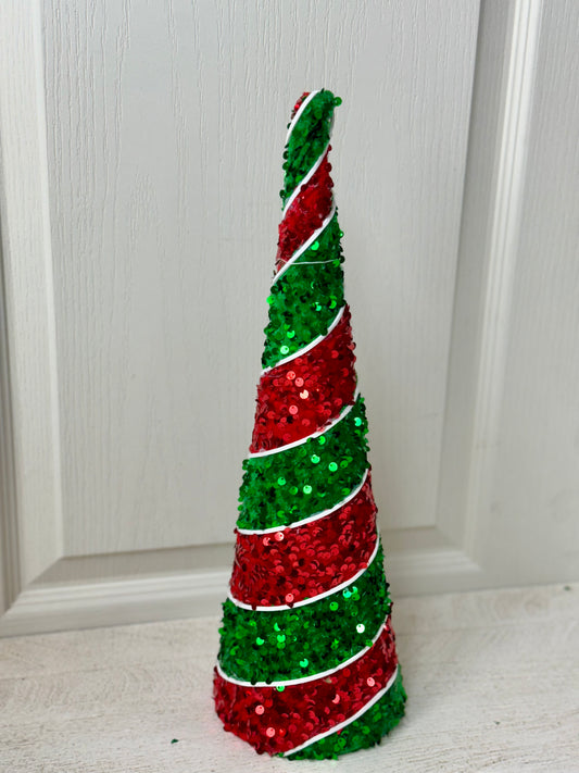 15.75 Inch Red And Emerald Sequin Cone Tree