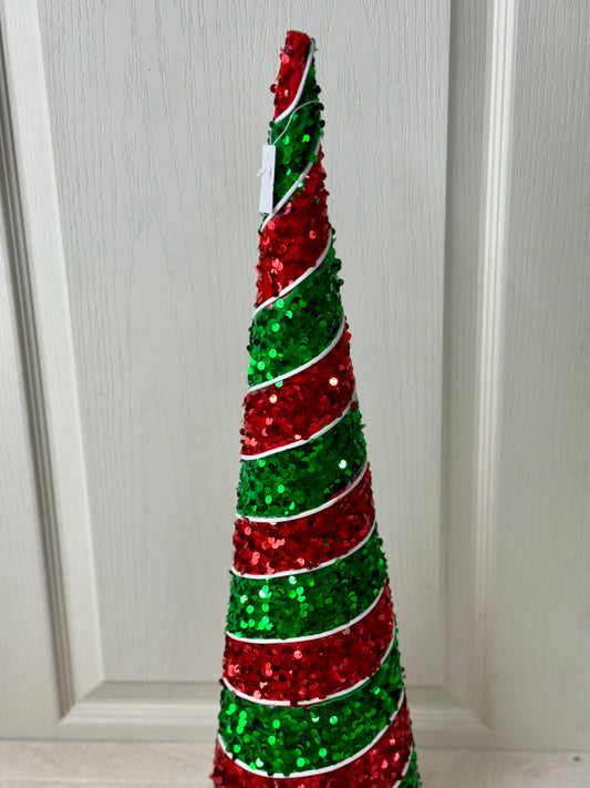 23.5 Inches Red And Emerald Sequin Cone Tree