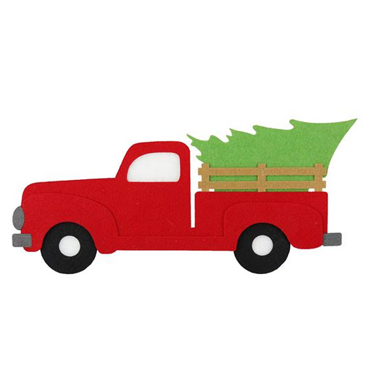 13.5 Inch Felt Red Truck with Tree Large Ornament