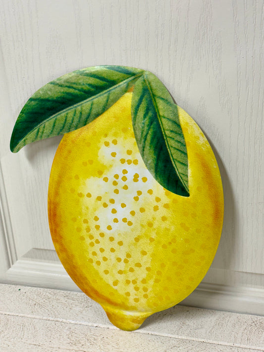 12 Inch Yellow Embossed Watercolor Lemon Metal Sign