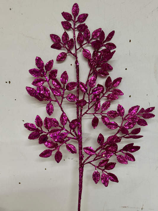 Sold out28 Inch Fuchsia Glitter Leaf Spray