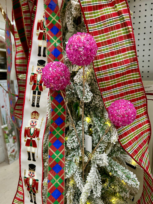 4 Inch By 10 Yard Hot Pink And Lime Glitter Harlequin Ribbon