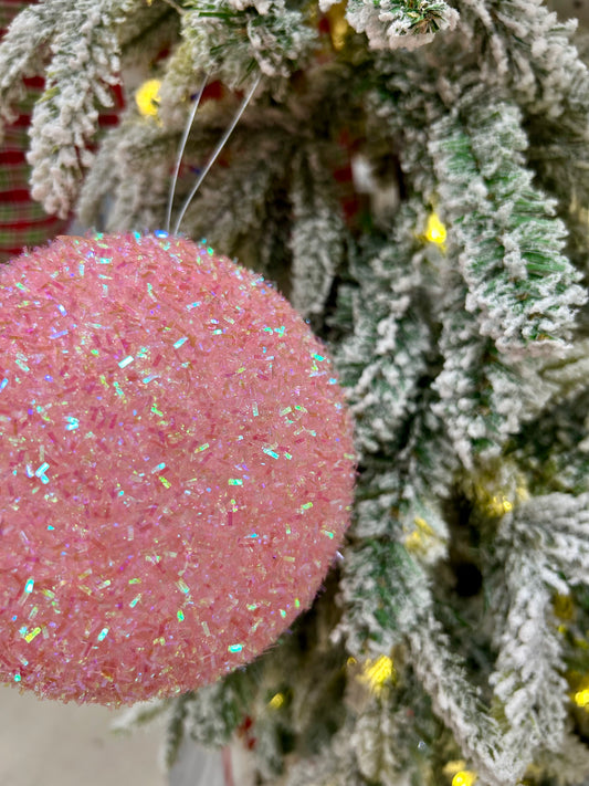 6 Inch Light Pink Glitter Iridescent Ornament Ball