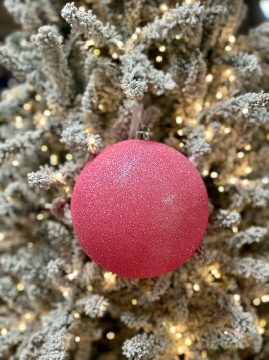 5 Inch Fuchsia Foil Glitter Ball Ornament