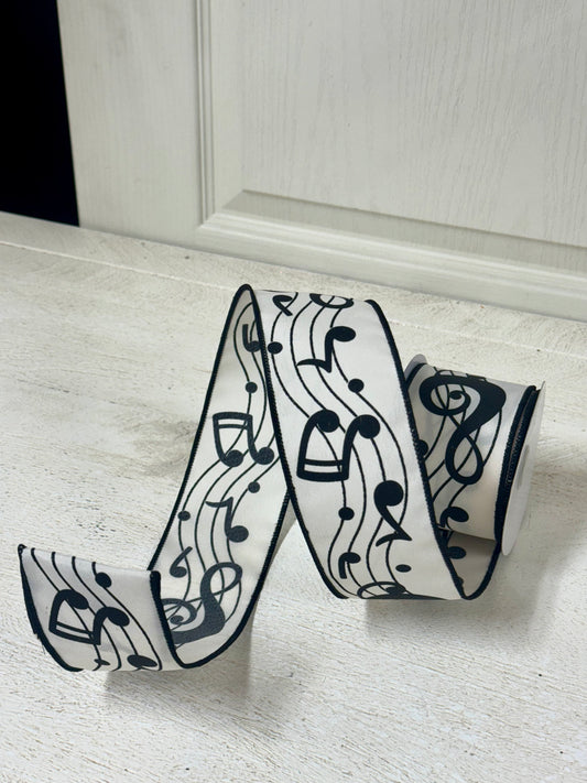 2.5 Inch By 10 Yard Ivory Black Bold Music Notes Ribbon