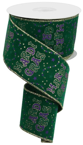 2.5 Inch Emerald Mardi Gras With Beads Ribbon