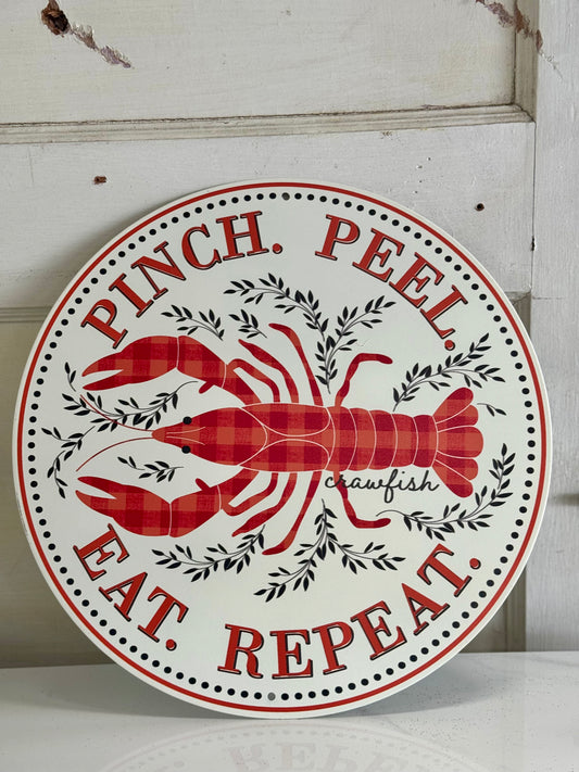 Pinch Peel Eat Repeat Crawfish Metal Sign