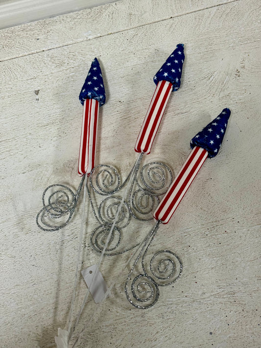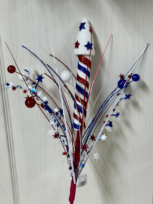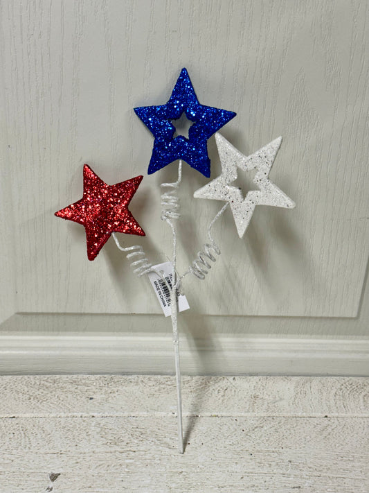 11.5 Inch Red White And Blue Glitter Star Pick With Curly Wire