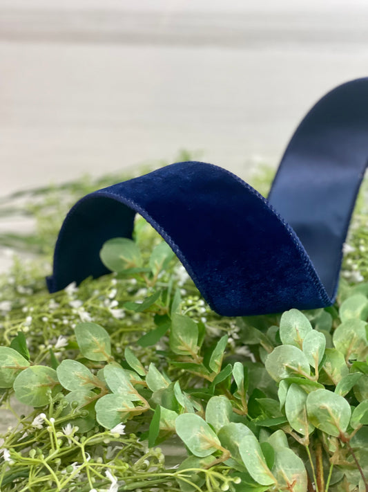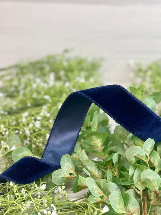 1.5 Inch By 10 Yard Navy Blue Velvet Ribbon With Satin Backing
