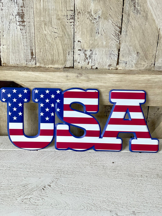 USA Flag Metal Wreath Sign