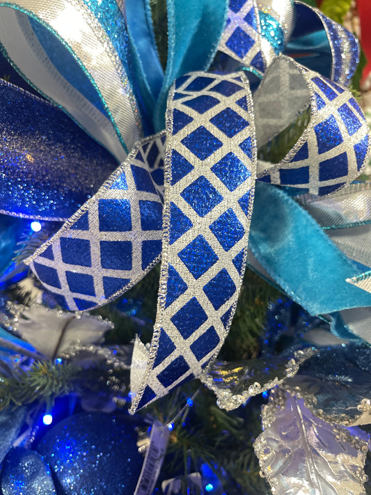 1.5 Inch By 10 Yard Royal Blue And Silver Laser Metallic Ribbon