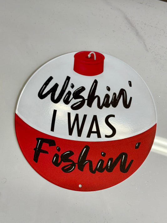 • 8 Inch Wishin I Was Fishin Bobber Metal Sign