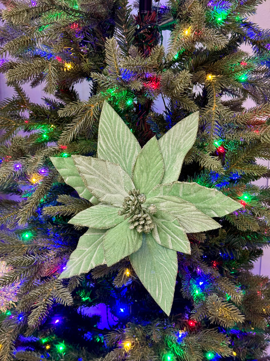 11.5 Inch Mint Green Velvet Poinsettia Spray