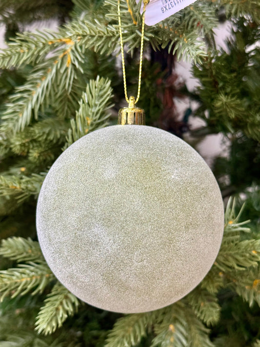 4 Inch Sage Green Flocked Ornament Ball