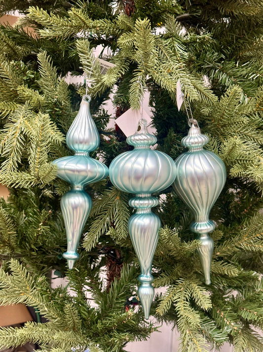 9.5-10 Inch Matte Icey Blue Glass Finials Three Styles