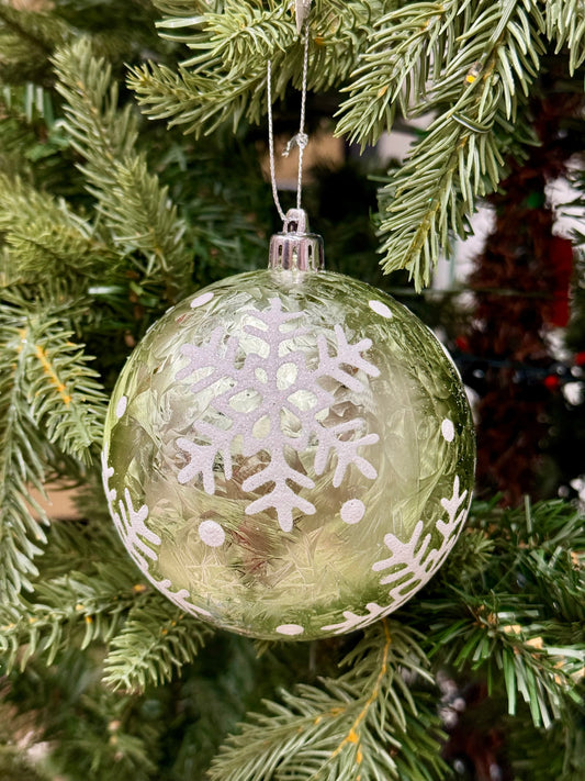 4 Inch Snowflake Feather Green Ornament Ball
