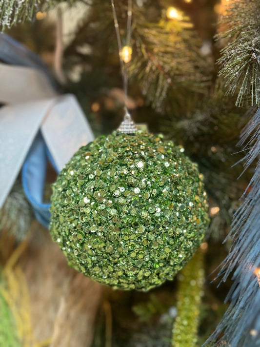 4.75 Inch Soft Green Glitter Sequin Ornament Ball