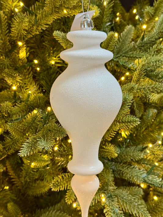 10 Inch Glitter White Shiny Finial Ornament
