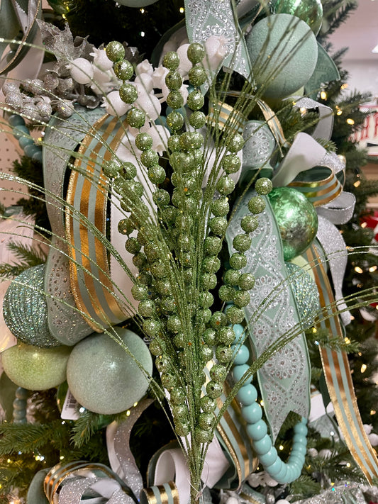 35 Inch Sage Green And Gold Ball And Bead Spike Spray