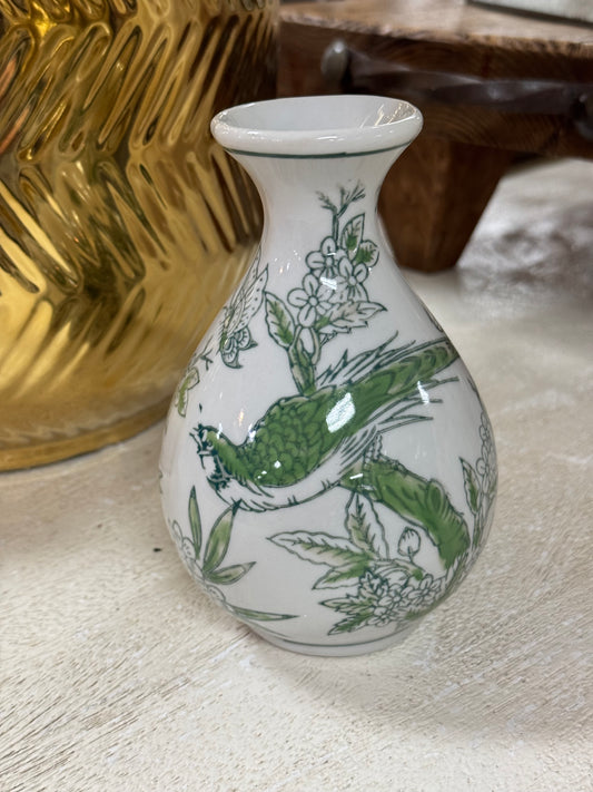 6 Inch Green And White Porcelain Vases With Nature Motifs Three Styles