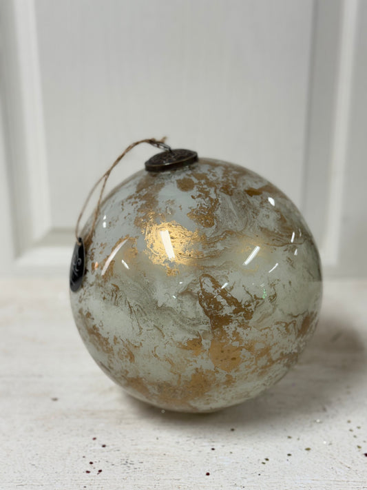 6 Inch Sage Green Gold And White Marble Glass Ball Ornament