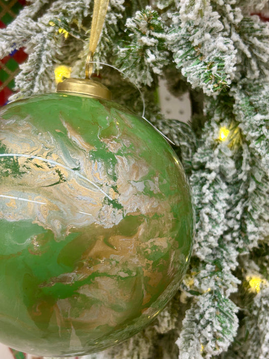 5 Inch Sage Green Gold And White Marble Glass Ball Ornament