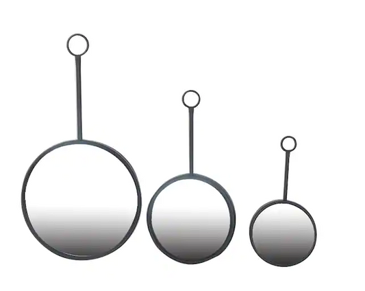 Home Decorators Collection Medium Round Black Metal Industrial Accent Mirror Set of 3