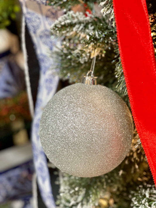 6 Inch Silver Glittered Ornament Ball