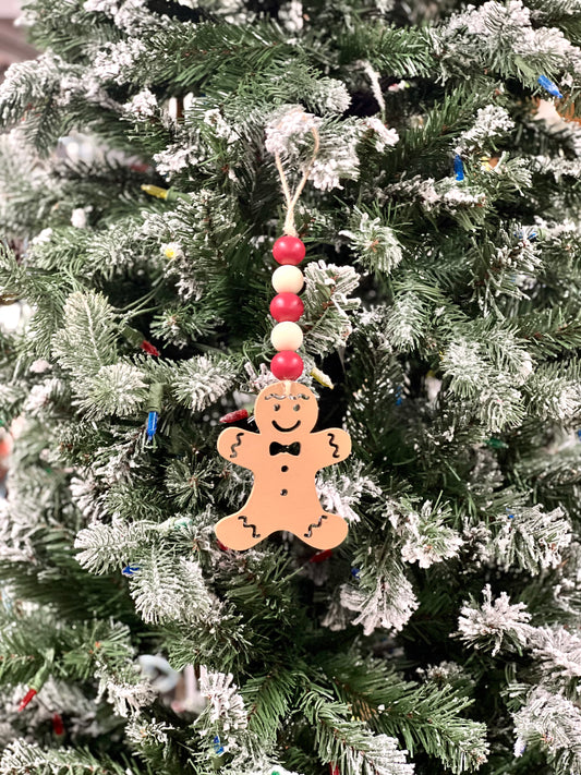 Gingerbread Wood Beaded Christmas Ornament