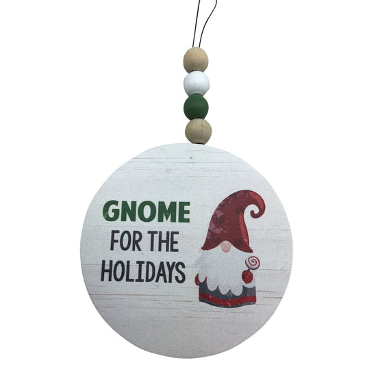 Wooden Gnome Disc Ornament with Beads 4 Styles
