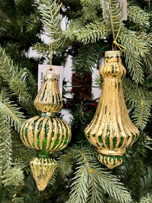 5 Inch- 6 Inch Emerald And Gold Antique Glass Ornament Two Styles
