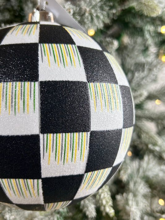 6 Inch Black And White Glitter Check Ornament