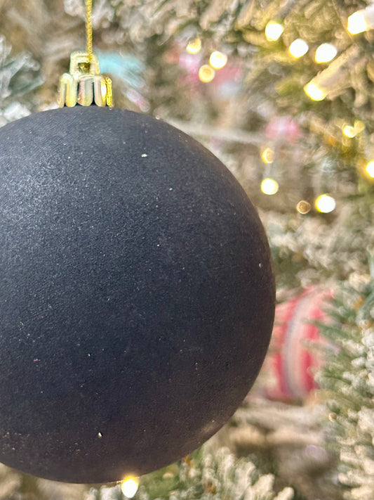 4 Inch Black Smooth Flocked Ball Ornament
