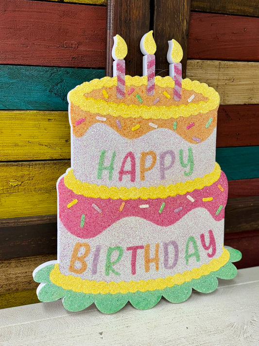 Happy Birthday Pastel Glittered Eva Birthday Cake Sign